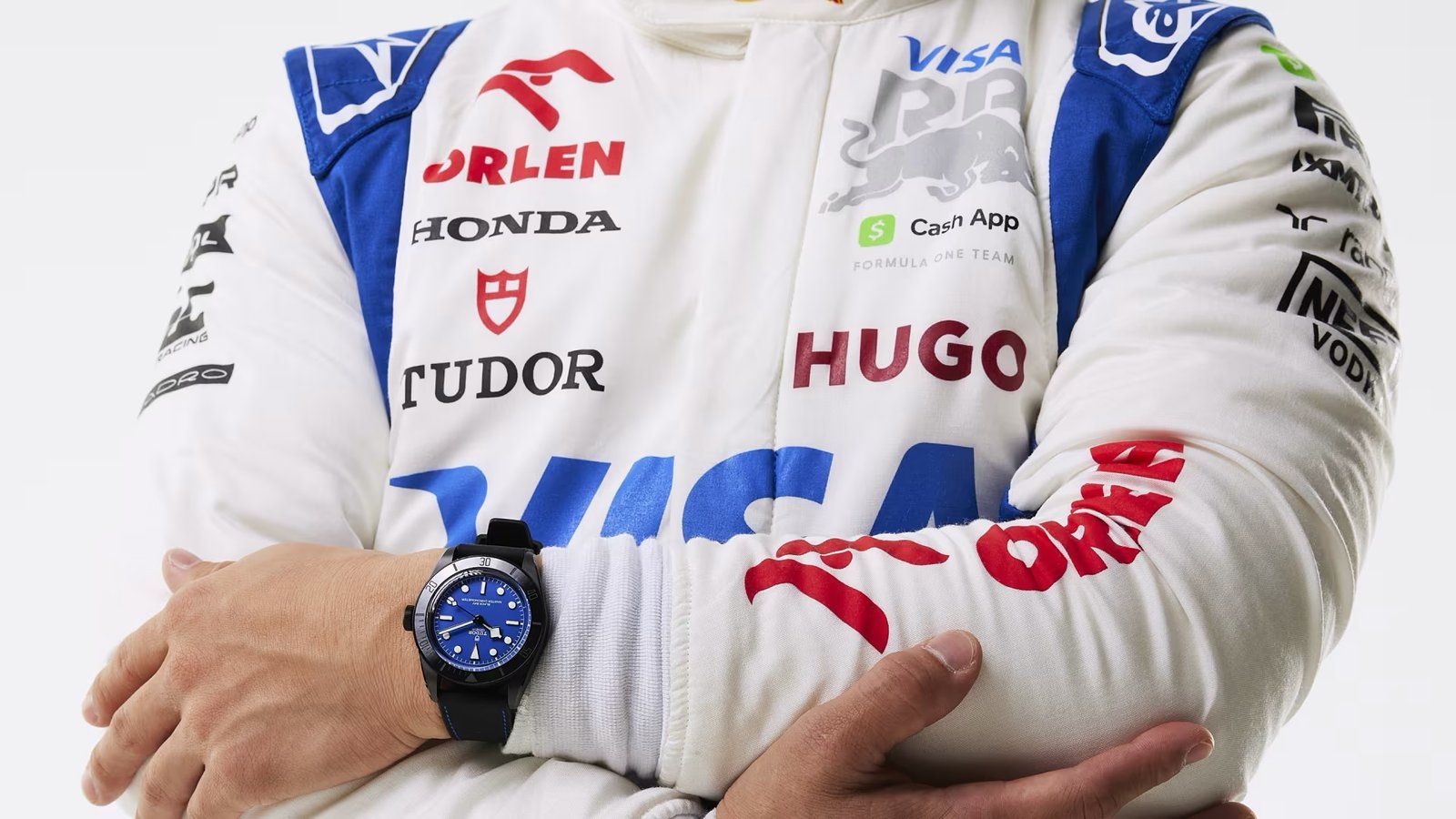Die drehbare Lünette besteht ebenfalls aus schwarzer Keramik mit satiniertem Radialschliff und passenden gravierten Graduierungen, die dezente Lichtreflexionen erzeugen. Ein schwarzes Hybridarmband aus Leder und Kautschuk mit „Snowflake“-Motiv, blauen Nähten und einer schwarzen Edelstahl-PVD-Faltschließe sowie ein zusätzliches schwarzes Textilband mit blauem Streifen vervollständigen den Look.