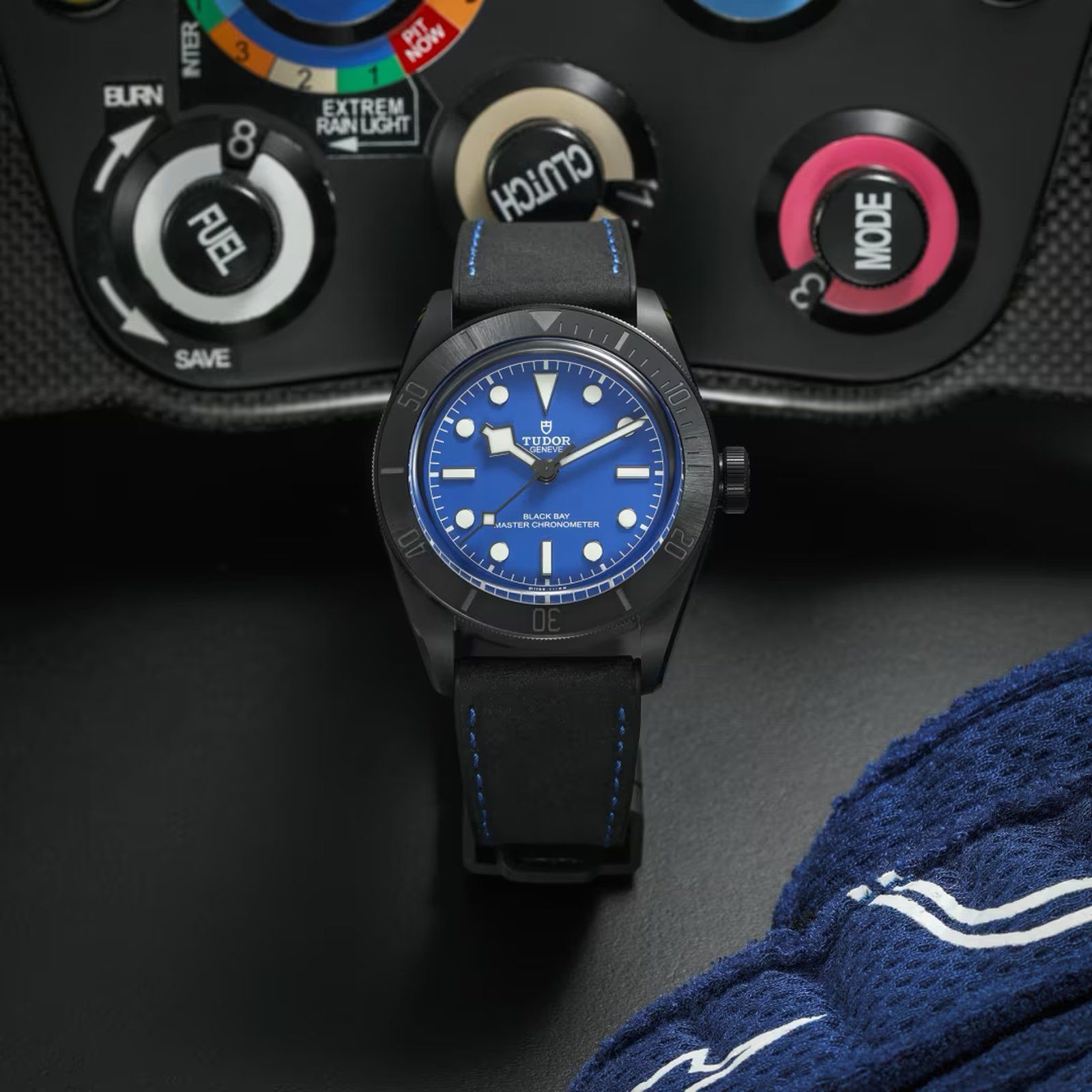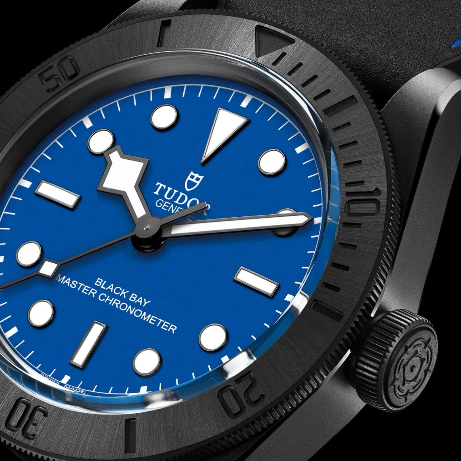Ästhetisch vereint die TUDOR Black Bay Ceramic „Blue“ moderne Hightech-Details mit subtilem Erbe. Das mattschwarze Keramik-Gehäuse hat sandgestrahlte Oberflächen und polierte, abgeschrägte Kanten, die markante Kontraste bilden.