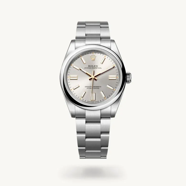 Entdecken Sie das Modell Rolex Oyster Perpetual 41 mit einem Durchmesser von 41 mm in Edelstahl Oystersteel bei Juwelier Gadebusch, einem offiziellen Rolex Fachhändler, der zum Verkauf und zur Wartung von Rolex Armbanduhren berechtigt ist.