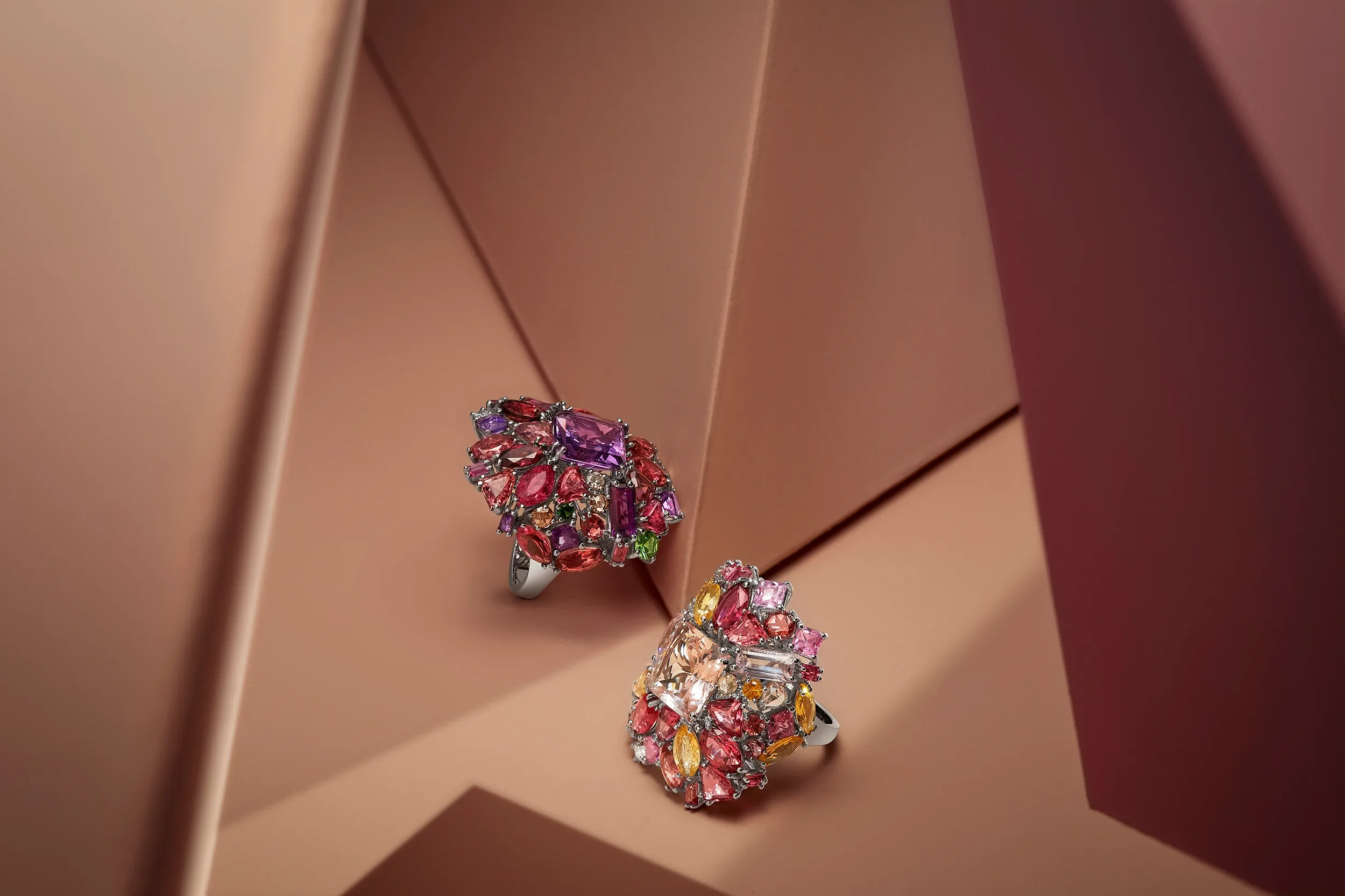 Die Chandelier Ringe aus dem Hause Grimaldo Firenze sind eine Neuinterpretation klassischer Edelsteine: Äußerst elegant und extravagant zugleich vereinen sie Größe, Form und Farbe in einem üppigen Feuerwerk aus Farbe und Licht. Den Anspruch an höchste Schmuckexzellenz unterstreichen dabei sowohl die klare Anordnung als auch die handwerklich meisterhafte Umsetzung.