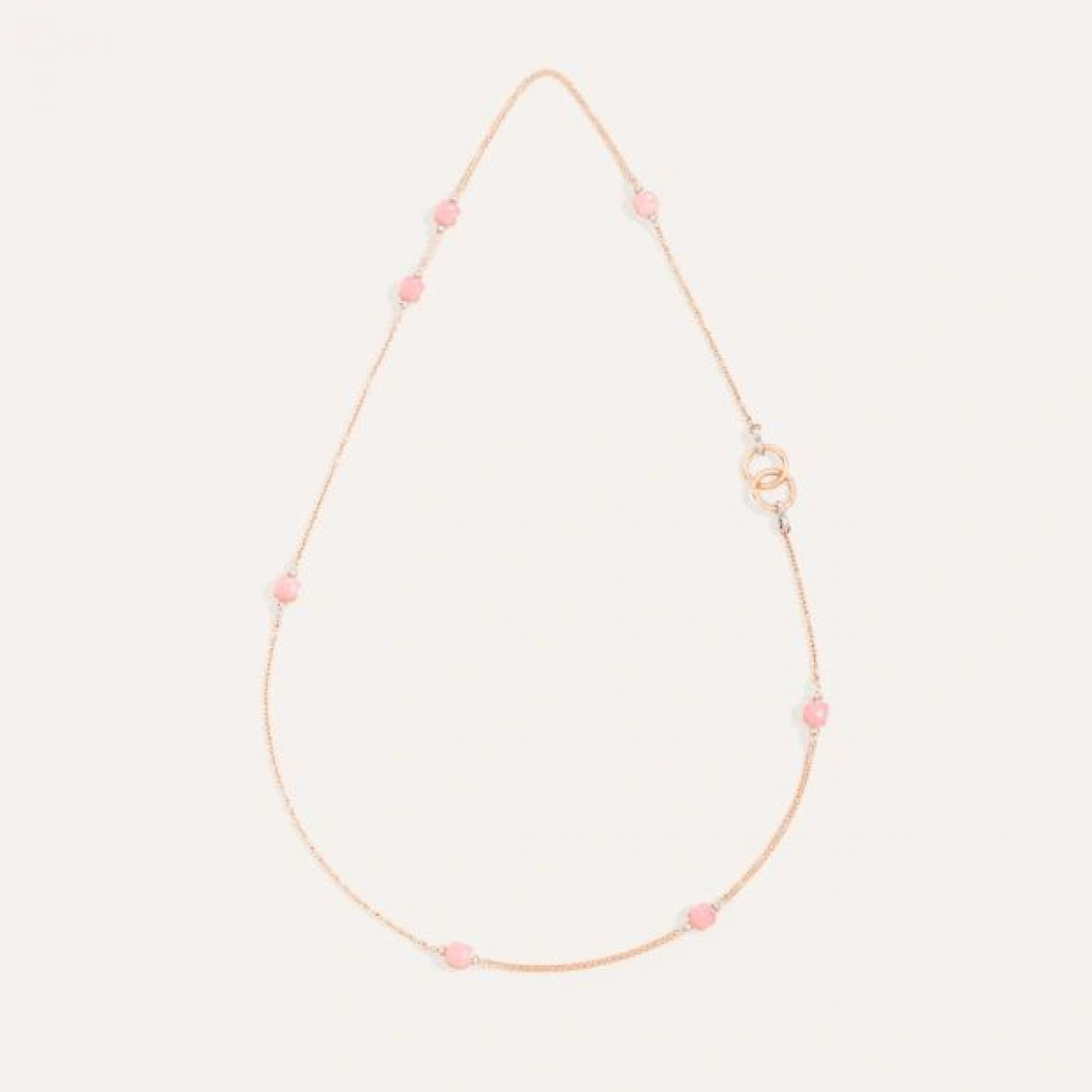 Halskette aus 18 kt. rosé- und weißgold, 7 rosenquarzen und chalcedon (≈ 15,7 kt.). länge: 90 cm.