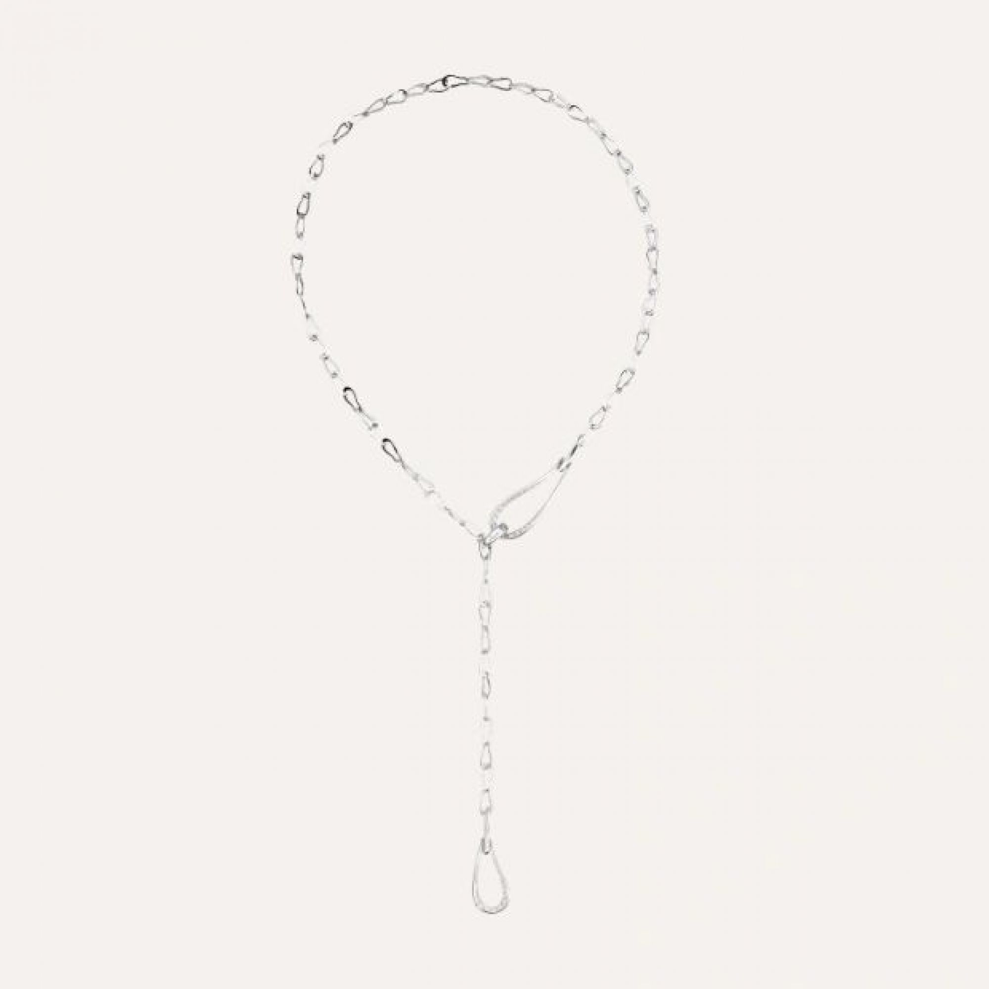 Pomellato stellt die Fantina-Halskette aus Weißgold und Diamanten vor, die sowohl als Sautoir als auch als Lariat getragen werden kann. Durch das minimalistische und raffinierte Design passt sie zu jedem Alltagslook