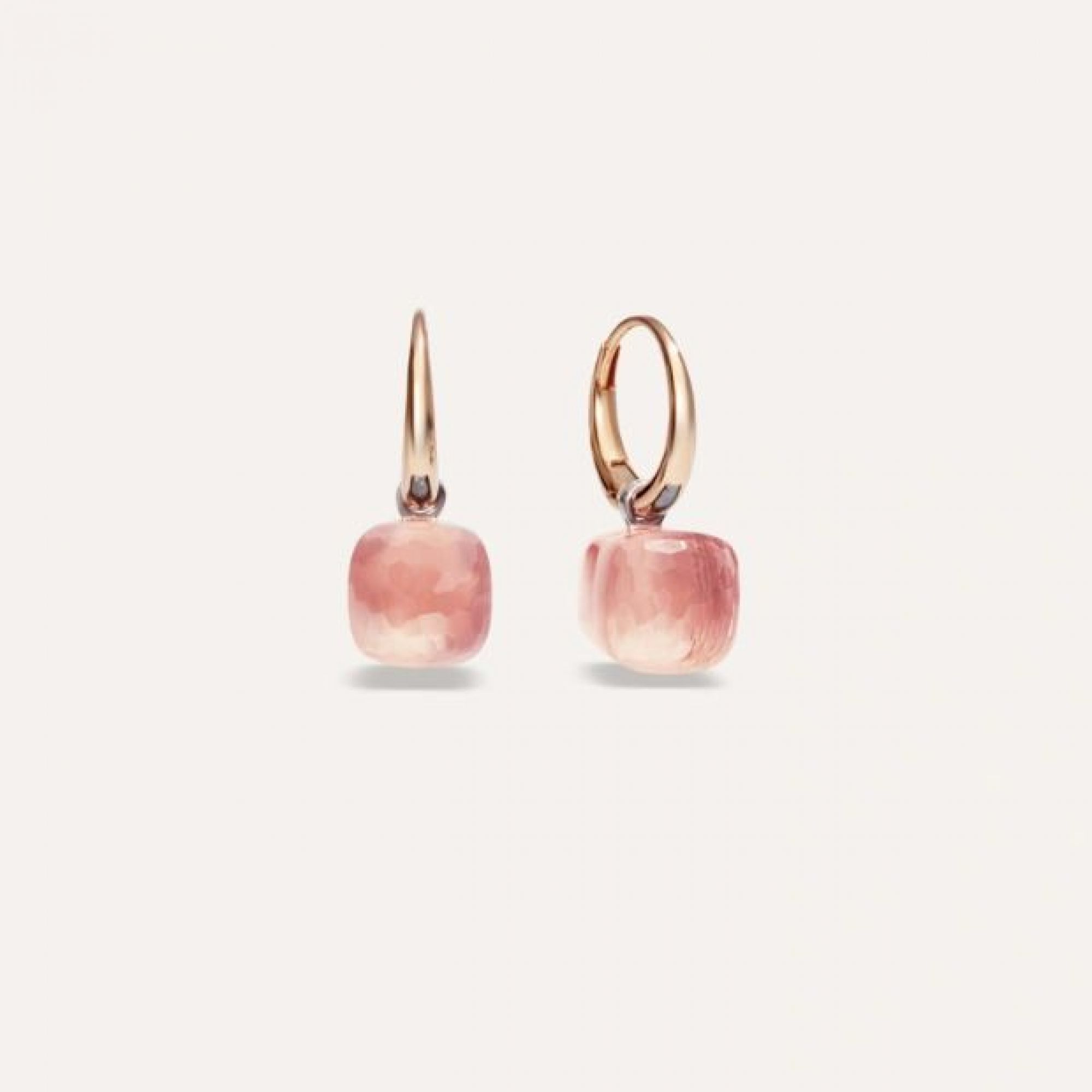 Nudo Petit im Farbton der Liebe: die Ohringe mit Rosenquarz gibt es jetzt auch in kleineren Steingrößen. Der Rosenquarz ist in Rosé- und Weißgold gefasst und präsentiert sich in der kühnen, charakteristischen Form der Nudo Kollektion.