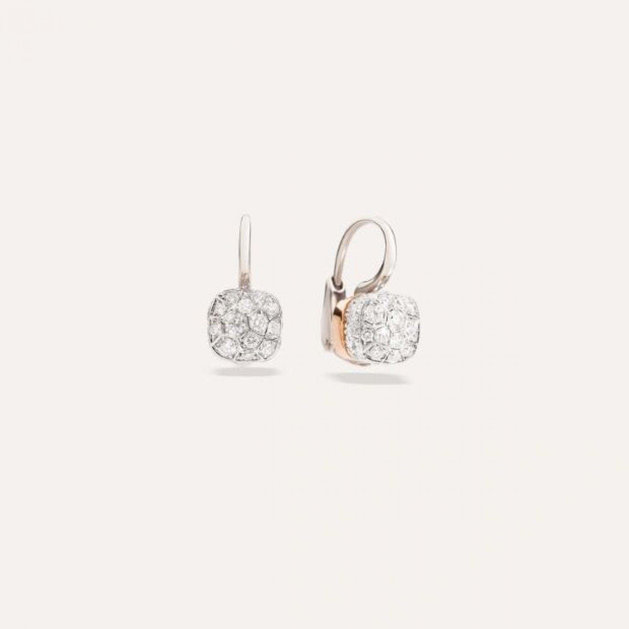 Ein kostbares Pavé bildet bei diesen Ohrringen die unverwechselbare Silhouette von Nudo und verdoppelt den Zauber der Edelsteine.