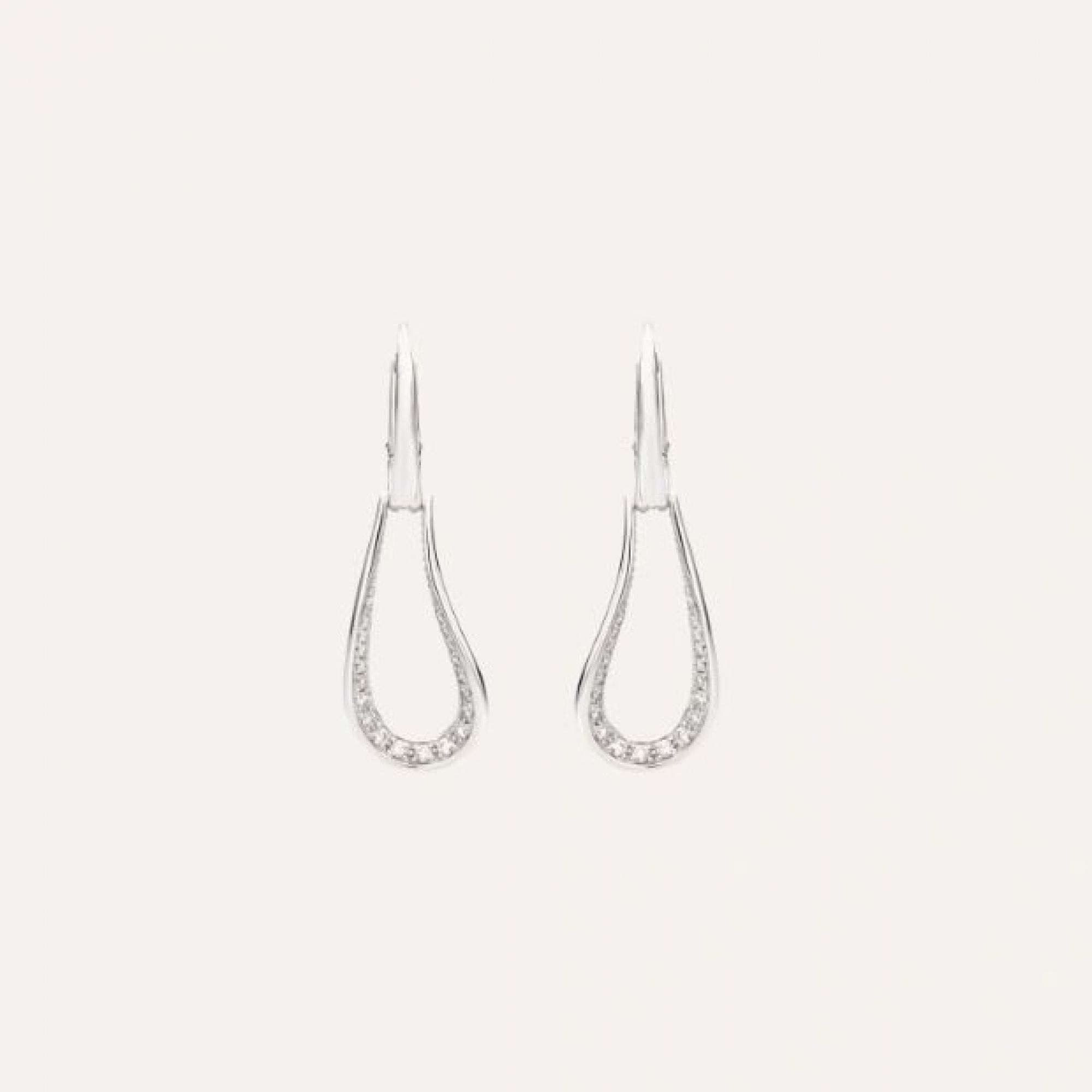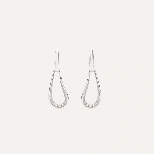 Pomellato präsentiert die Fantina-Ohrringe aus Weißgold und Diamanten. Durch das minimalistische und raffinierte Design passen sie zu jedem Alltagslook.