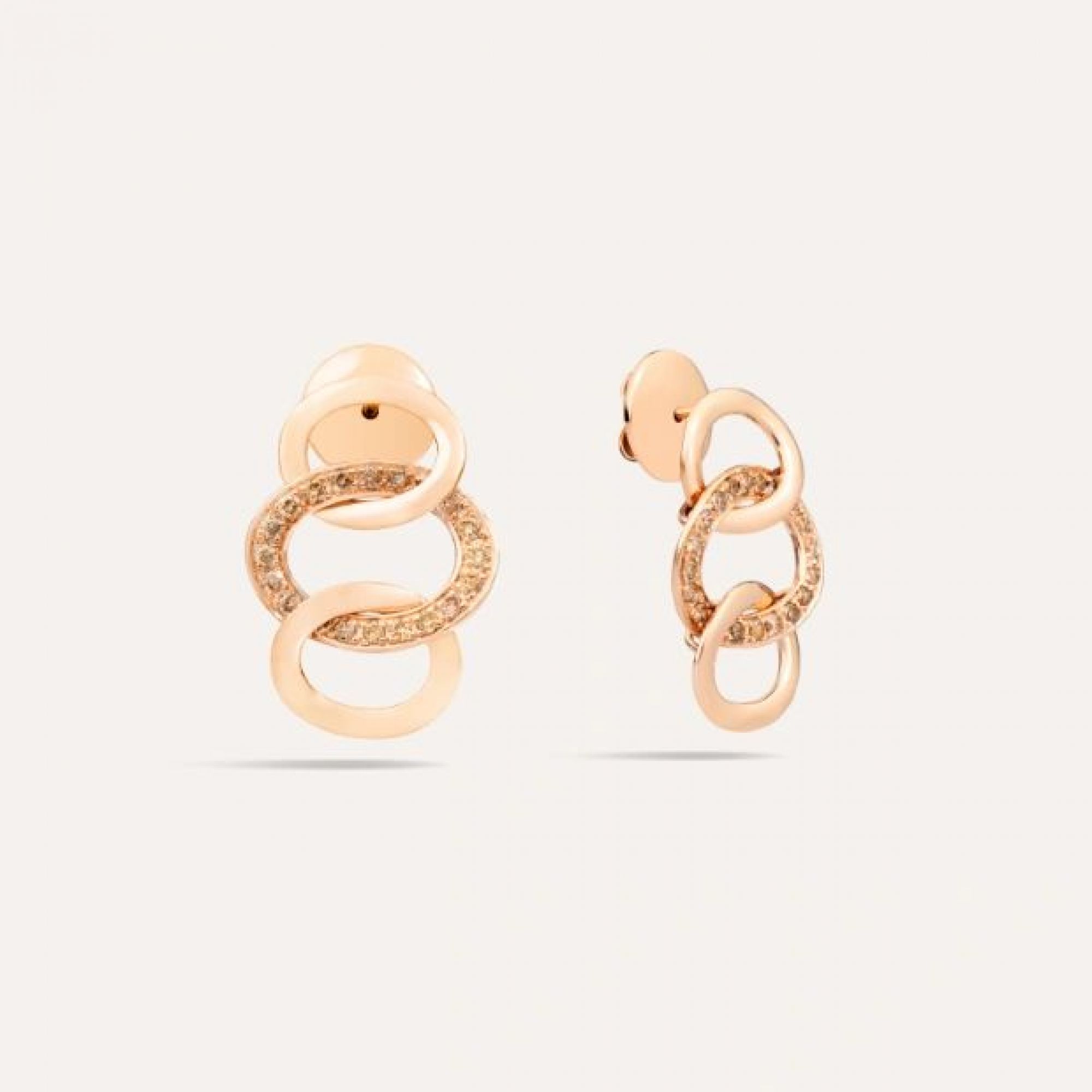 Ohrringe aus 18 Kt Roségold mit 40 braunen Diamanten (≈0.6 ct).