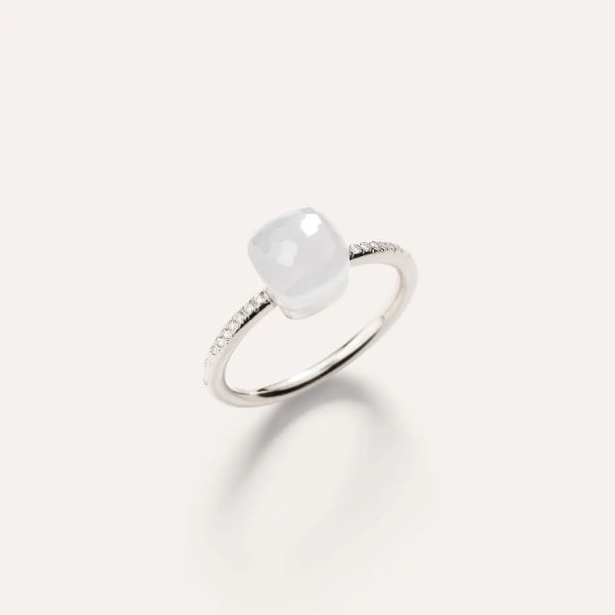 Immer auf der Suche nach Möglichkeiten, die innere Schönheit von Edelsteinen zur Geltung zu bringen, präsentiert die Nudo Milky Kollektion jetzt einen durchscheinenden cremefarbenen weißen Quarz. Ein Petit-Ring, der in Weißgold gefasst und mit Diamanten verziert ist. Zum ersten Mal verwendet Pomellato Mangan-Weißgold, eine neue Legierung, die ein länger schön bleibendes, helleres Weißgold ergibt.