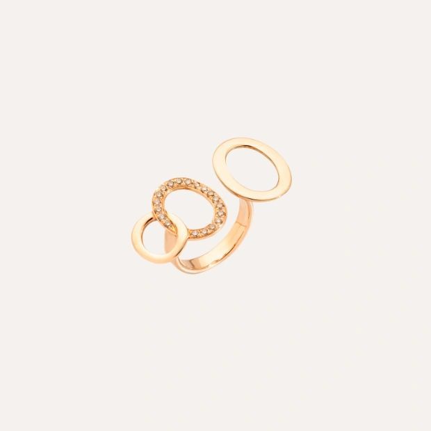 Pomellato zelebriert den einzigartigen Stil seiner Maison mit den unübersehbaren neuen Schmuckstücken der Kollektion Brera für die schicke und modebewusste Frau. Die Schmuckstücke der Kollektion Brera sind etwas ganz Besonderes und für selbstbewusste Frauen bestimmt, die den kühnen italienischen Stil lieben. Die Zwischenfingerringe - in Ein- oder Zweifinger-Ausführung - wölben sich zu Kreisen von strahlender Pracht aus Roségold und Roségold mit braunen Diamanten.