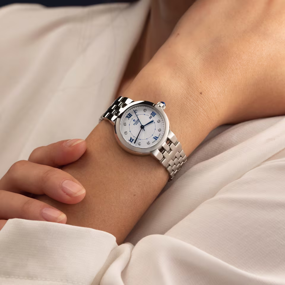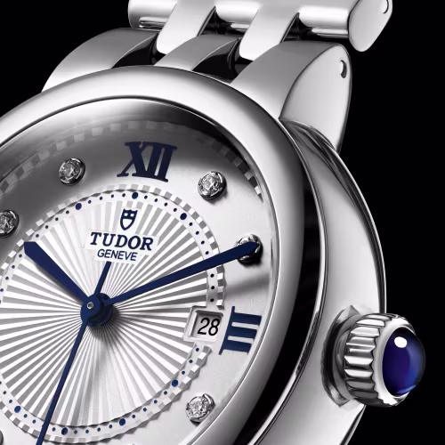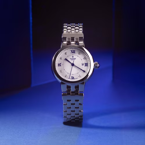 Die Clair de Rose Linie ist eine Hommage an die traditionelle Uhrmacherkunst von TUDOR und wurde speziell für Damen entwickelt, die Wert auf Stil, Präzision und Eleganz legen. Charakteristisch sind die verspielten Designelemente, wie die geschwungene Krone mit blauem Spinellcabochon oder die subtil integrierten römischen Ziffern auf dem Zifferblatt. Diese Details verleihen der Uhr eine feminine Raffinesse, die sie zu einem edlen Begleiter für Alltag und besondere Anlässe macht.