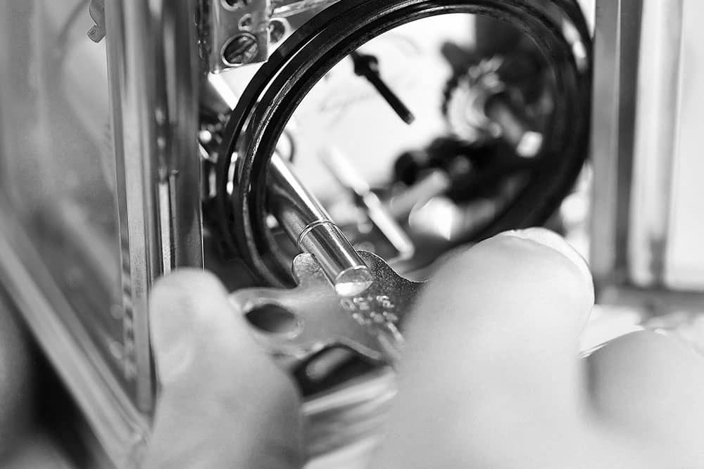 Zur Boutique gehört die hauseigene zertifizierte Meisterwerkstatt von Juwelier Gadebusch. Hier arbeiten erfahrene Uhrmacher mit höchster Präzision und Leidenschaft daran, Ihre Uhr fachgerecht zu pflegen und zu warten. Jede Reparatur und jede Revision wird nach strengsten Standards durchgeführt, damit Sie lange Freude an Ihrem Zeitmesser haben.