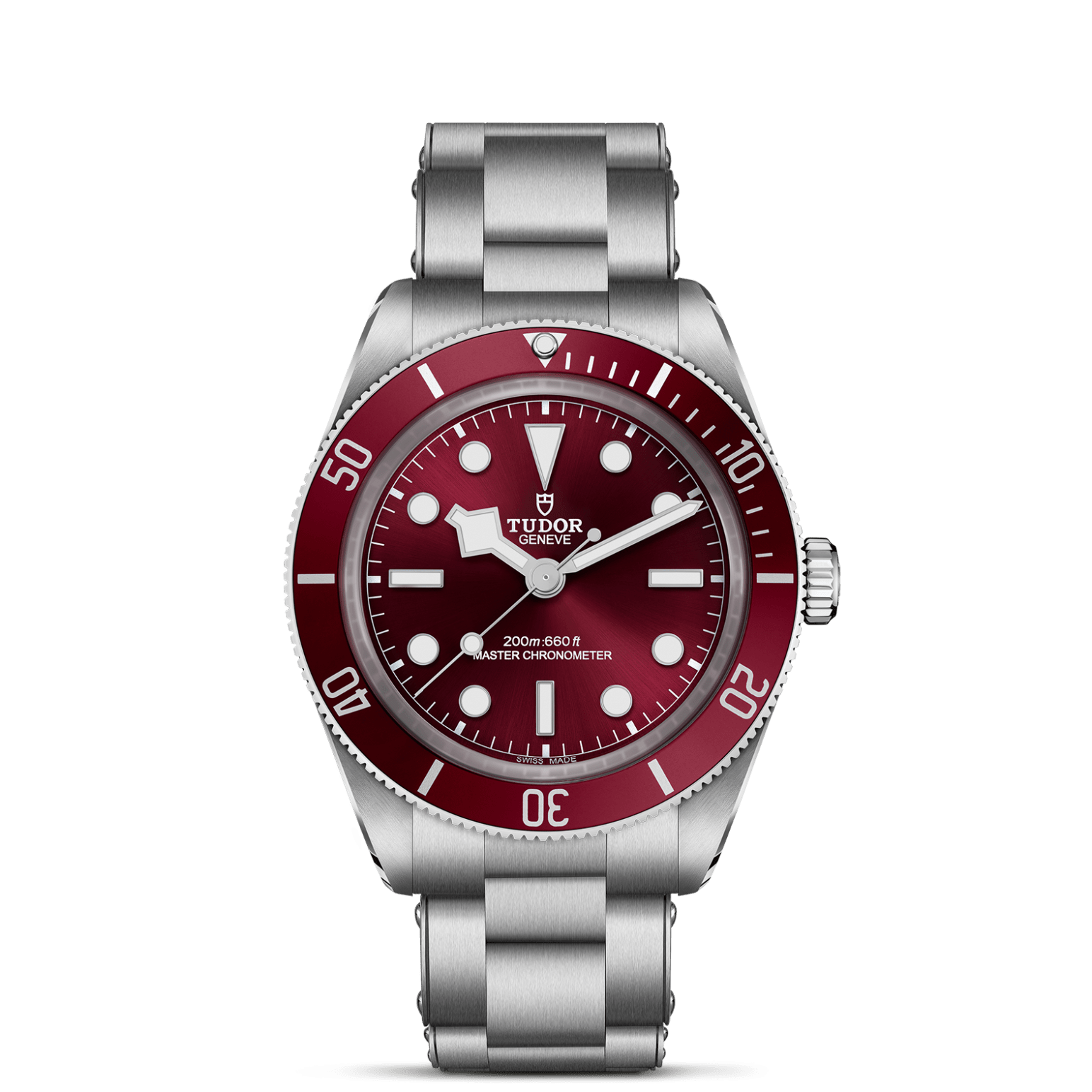 Gehäuse in Edelstahl, 39 mm, Bordeauxfarbenes Zifferblatt
