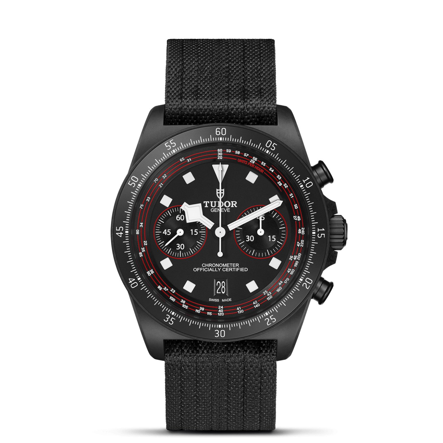 Gehäuse von 43 mm aus Carbon, Schwarzes Textilband