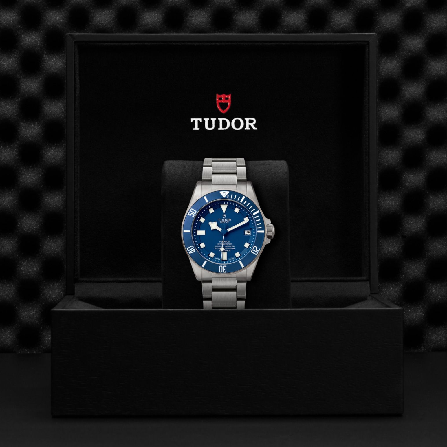Die Pelagos steht für extreme Funktionalität unter Wasser. Aus Titan gefertigt, bis zu 500 Meter wasserdicht und mit Heliumventil ausgestattet, ist sie die professionelle Taucheruhr von TUDOR. Technische Exzellenz, Leichtigkeit und Robustheit für Abenteuer in der Tiefe.