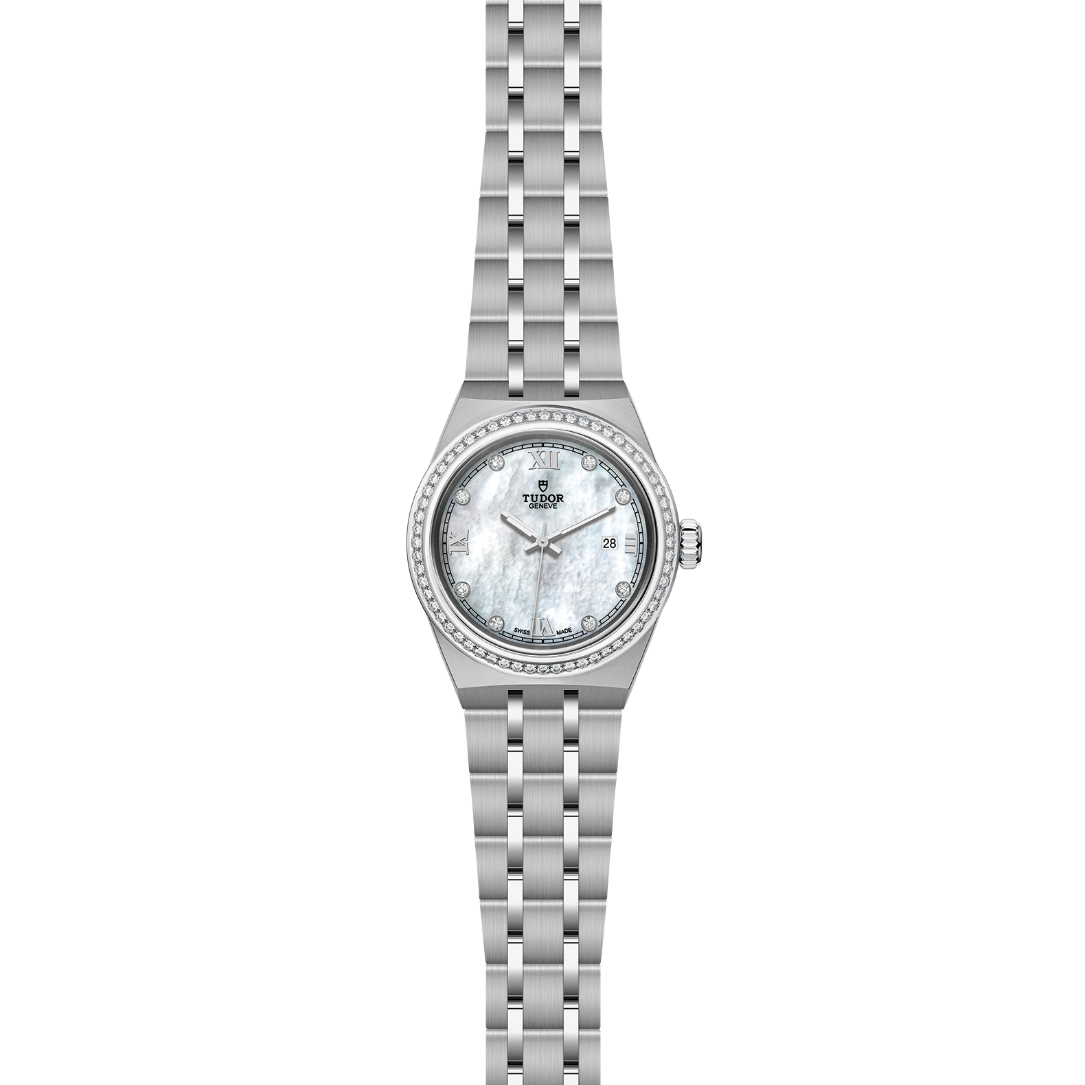 Gehäuse in Edelstahl, 28 mm, Zifferblatt mit Diamanten