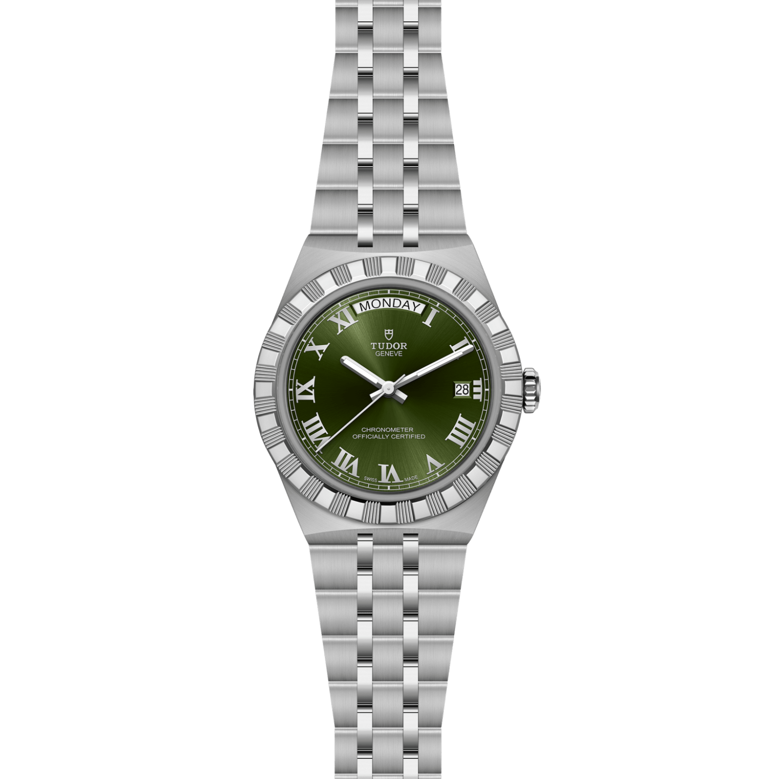 Als sportlich-elegante Allrounduhr verbindet die TUDOR Royal Edelstahl, integriertes Armband und markante Lünette zu einem charaktervollen Zeitmesser, der sich für Alltag und Sport gleichermaßen eignet.