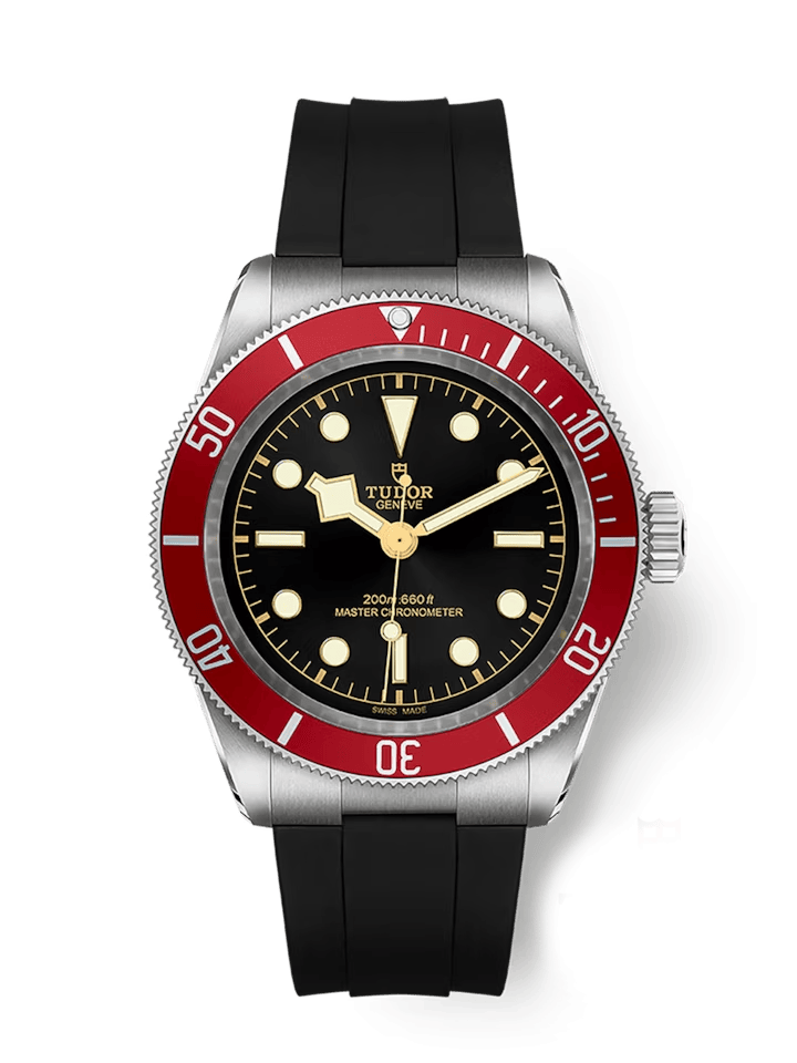 Die Black Bay 54 empfindet die erste Taucheruhr von TUDOR, die Referenz 7922, mit größter Formtreue nach. Das Gehäuse von 37 mm behält die klassischen Proportionen aus vergangenen Zeiten bei. Dennoch zeichnet sich das Modell durch die technische Leistungsfähigkeit von TUDORs einmaligem Manufakturwerk Kaliber MT5400 sowie eine Wasserdichtigkeit bis 200 Meter Tiefe aus.